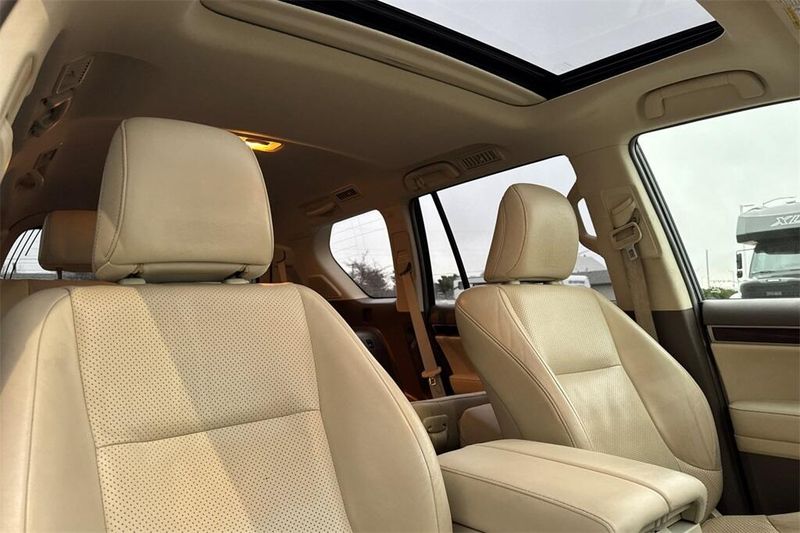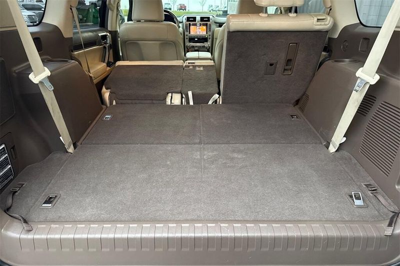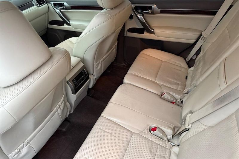 3.909 Axle Ratio, 3rd row seats: split-bench, 4-Wheel Disc Brakes, 9 Speakers, ABS brakes, Adaptive suspension, Air Conditioning, Alloy wheels, AM/FM radio: SiriusXM, Anti-whiplash front head restraints, Auto tilt-away steering wheel, Auto-dimming door mirrors, Auto-dimming Rear-View mirror, Auto-leveling suspension, Automatic temperature control, Bodyside moldings, Brake assist, Bumpers: body-color, CD player, Compass, Delay-off headlights, Driver door bin, Driver vanity mirror, Driver's Seat Mounted Armrest, Dual front impact airbags, Dual front side impact airbags, Electronic Stability Control, Emergency communication system: Safety Connect, Exterior Parking Camera Rear, Front anti-roll bar, Front Bucket Seats, Front dual zone A/C, Front fog lights, Front reading lights, Front wheel independent suspension, Fully automatic headlights, Garage door transmitter: HomeLink, Genuine wood console insert, Genuine wood dashboard insert, Genuine wood door panel insert, Headlight cleaning, Heated & Ventilated Front Bucket Seats, Heated door mirrors, Heated front seats, Heated rear seats, Heated steering wheel, Illuminated entry, Illuminated running boards, Knee airbag, Leather Shift Knob, Leather steering wheel, Low tire pressure warning, Memory seat, Navigation System, Occupant sensing airbag, Outside temperature display, Overhead airbag, Overhead console, Panic alarm, Passenger door bin, Passenger seat mounted armrest, Passenger vanity mirror, Power door mirrors, Power driver seat, Power moonroof, Power passenger seat, Power steering, Power windows, Radio data system, Radio: AM/FM Lexus Premium Audio, Rain sensing wipers, Rear air conditioning, Rear anti-roll bar, Rear reading lights, Rear seat center armrest, Rear side impact airbag, Rear window defroster, Rear window wiper, Remote keyless entry, Roof rack: rails only, Security system, Semi-Aniline Leather Seats, Speed control, Speed-sensing steering, Split folding rear seat, Spoiler, Steering wheel memory, Steering wheel mounted audio controls, Tachometer, Telescoping steering wheel, Tilt steering wheel, Traction control, Trip computer, Turn signal indicator mirrors, Variably intermittent wipers, Ventilated front seats, Wheels: 18'' x 7.5'' Split 6-Spoke Aluminum Alloy.