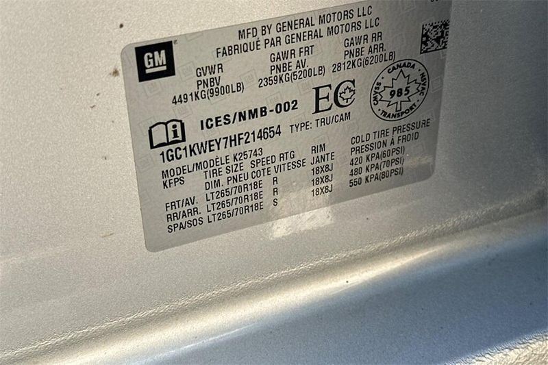 Allison 1000 6-Speed Automatic, 4WD, Jet Black w/Leather Appointed Seat Trim, 110-Volt AC Power Outlet, 18'' Chromed Aluminum Wheels, 4-Wheel Disc Brakes, 4.2'' Diagonal Color Display Driver Info Center, 6 Speakers, 6-Speaker Audio System, ABS brakes, Air Conditioning, Alloy wheels, AM/FM radio: SiriusXM, Auto-dimming door mirrors, Auto-Dimming Inside Rear-View Mirror, Auto-dimming Rear-View mirror, Automatic temperature control, Bodyside moldings, Brake assist, Bumpers: chrome, CD player, Chrome Bodyside Moldings, Chrome Door Handles, Chrome Mirror Caps, Chrome wheels, Color-Keyed Carpeting Floor Covering, Compass, Deep-Tinted Glass, Delay-off headlights, Digital Steering Assist, Driver & Front Passenger Vanity Mirror Visors, Driver door bin, Driver vanity mirror, Dual front impact airbags, Dual front side impact airbags, Dual-Zone Automatic Climate Control, Electric Rear-Window Defogger, Electronic Shift Transfer Case, Electronic Stability Control, Emergency communication system: OnStar Guidance, Exterior Parking Camera Rear, EZ-Lift & Lower Tailgate, Front 40/20/40 Split Bench Seat, Front anti-roll bar, Front Center Armrest w/Storage, Front dual zone A/C, Front fog lights, Front Halogen Fog Lamps, Front reading lights, Front wheel independent suspension, Fully automatic headlights, Garage door transmitter, HD Radio, Heated door mirrors, Heated Driver & Front Passenger Seating, Heated front seats, Heated Power-Adjustable Outside Mirrors, Illuminated entry, Leather Appointed Seat Trim, Leather-Wrapped Steering Wheel, Low tire pressure warning, Manual Tilt-Wheel/Telescoping Steering Column, Memory seat, Occupant sensing airbag, OnStar 3 Month Guidance Plan, OnStar 4G LTE Wi-Fi Hotspot, Outside temperature display, Overhead airbag, Overhead console, Panic alarm, Passenger door bin, Passenger vanity mirror, Power door mirrors, Power driver seat, Power passenger seat, Power Sliding Rear Window w/Defogger, Power steering, Power windows, Power Windows w/Driver Express Up & Down, Premium audio system: Chevrolet MyLink, Radio: AM/FM Stereo w/Chevrolet MyLink, Rear 60/40 Folding Bench Seat (Folds Up), Rear reading lights, Rear seat center armrest, Rear step bumper, Rear Vision Camera, Rear Wheelhouse Liners, Rear window defroster, Remote Keyless Entry, Remote keyless entry, Remote Locking Tailgate, Remote Vehicle Starter System, Security system, Single Slot CD/MP3 Player, SiriusXM Satellite Radio, Speed control, Speed-sensing steering, Split folding rear seat, Standard Suspension Package, Steering Wheel Audio Controls, Steering wheel mounted audio controls, Tachometer, Telescoping steering wheel, Tilt steering wheel, Traction control, Trailering Equipment, Trip computer, Turn signal indicator mirrors, Unauthorized Entry Theft-Deterrent System, Universal Home Remote, Variably intermittent wipers, Voltmeter, Allison 1000 6-Speed Automatic, 4WD, Jet Black w/Leather Appointed Seat Trim.