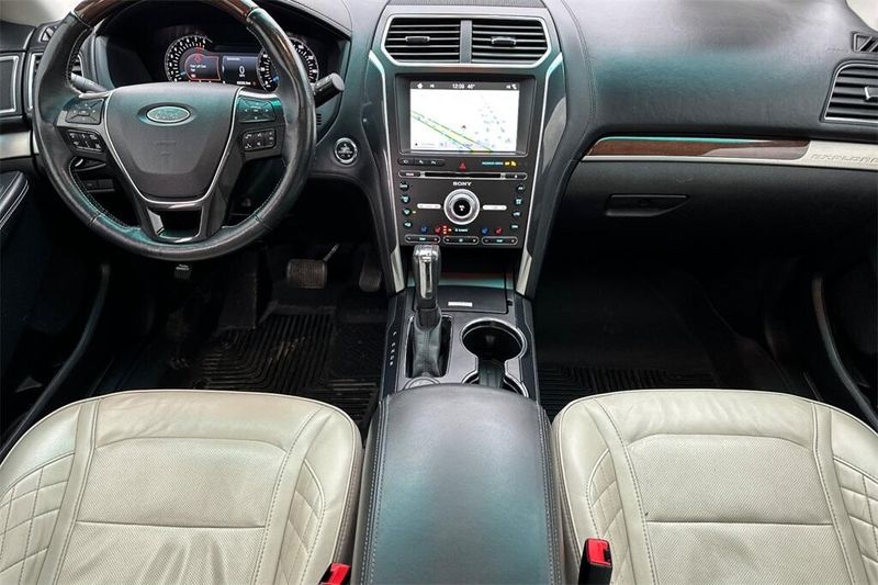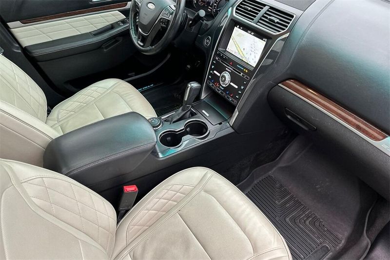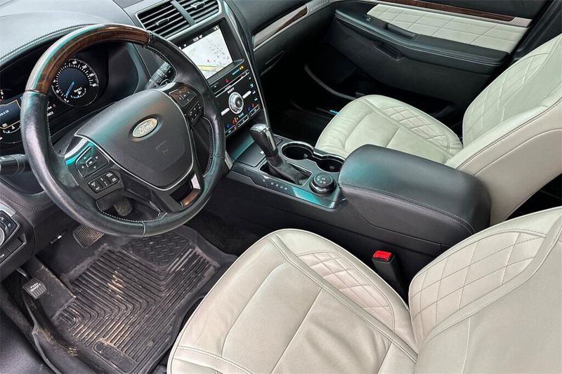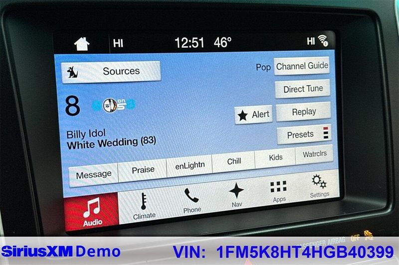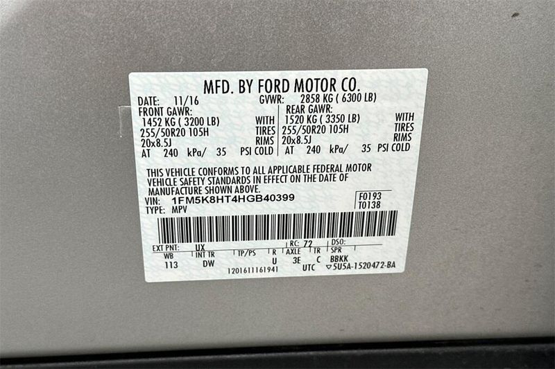 4WD, 12 Speakers, 3.16 Axle Ratio, 3rd row seats: split-bench, 4-Wheel Disc Brakes, ABS brakes, Adjustable pedals, Air Conditioning, Alloy wheels, AM/FM radio: SiriusXM, Auto High-beam Headlights, Auto tilt-away steering wheel, Auto-dimming door mirrors, Auto-dimming Rear-View mirror, Automatic temperature control, Brake assist, Bumpers: body-color, CD player, Compass, Delay-off headlights, Driver door bin, Driver vanity mirror, Dual front impact airbags, Dual front side impact airbags, Electronic Stability Control, Emergency communication system: SYNC 3 911 Assist, Equipment Group 600A, Exterior Parking Camera Rear, Four wheel independent suspension, Front & Rear Floor Liners, Front anti-roll bar, Front Bucket Seats, Front Center Armrest, Front dual zone A/C, Front fog lights, Front reading lights, Fully automatic headlights, Garage door transmitter, Genuine wood dashboard insert, Genuine wood door panel insert, Heated door mirrors, Heated front seats, Heated rear seats, Heated steering wheel, Illuminated entry, Knee airbag, Lane Departure Warning System, Leather steering wheel, Low tire pressure warning, Memory seat, Navigation System, Nirvana Multi Contour Leather Cooled Bucket Seats, Occupant sensing airbag, Outside temperature display, Overhead airbag, Overhead console, Panic alarm, Passenger door bin, Passenger vanity mirror, Pedal memory, Power door mirrors, Power driver seat, Power Liftgate, Power moonroof, Power passenger seat, Power steering, Power windows, Premium audio system: Sony, Radio data system, Radio: Premium Sound from Sony, Rain sensing wipers, Rear air conditioning, Rear anti-roll bar, Rear reading lights, Rear seat center armrest, Rear window defroster, Rear window wiper, Remote keyless entry, Roof rack: rails only, Security system, Speed control, Speed-sensing steering, Speed-Sensitive Wipers, Split folding rear seat, Spoiler, Steering wheel memory, Steering wheel mounted audio controls, SYNC 3 Communications & Entertainment System, Tachometer, Telescoping steering wheel, Tilt steering wheel, Traction control, Trip computer, Turn signal indicator mirrors, Variably intermittent wipers, Ventilated front seats, Wheels: 20'' Bright Machined Face Aluminum, 4WD.