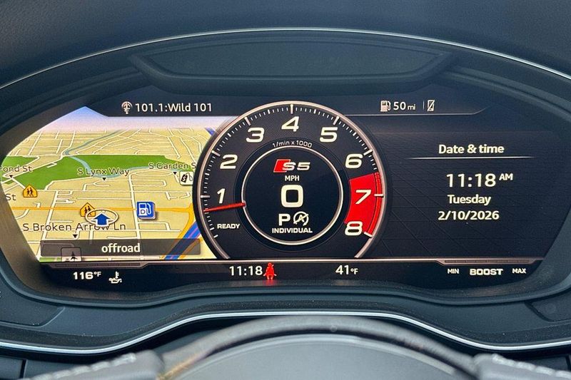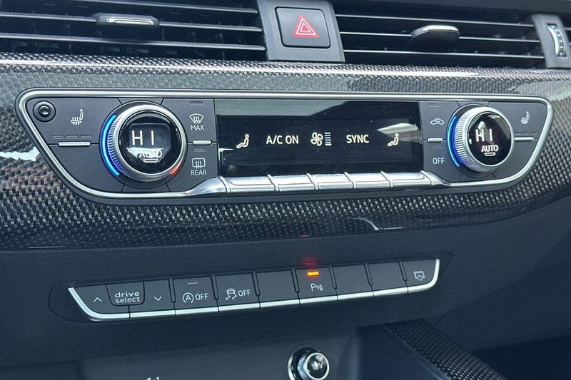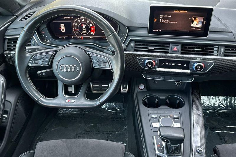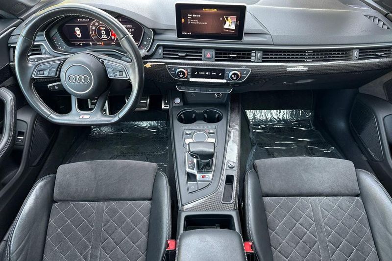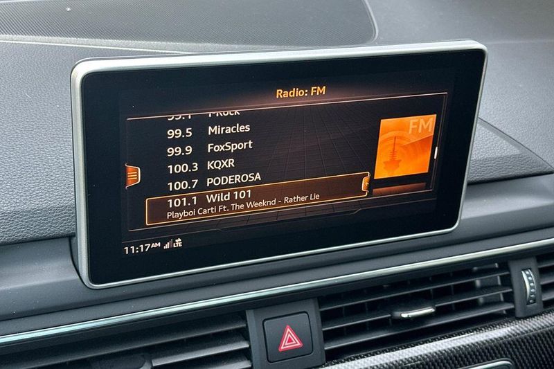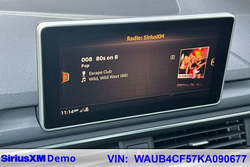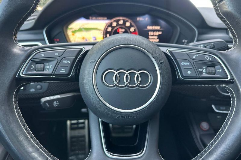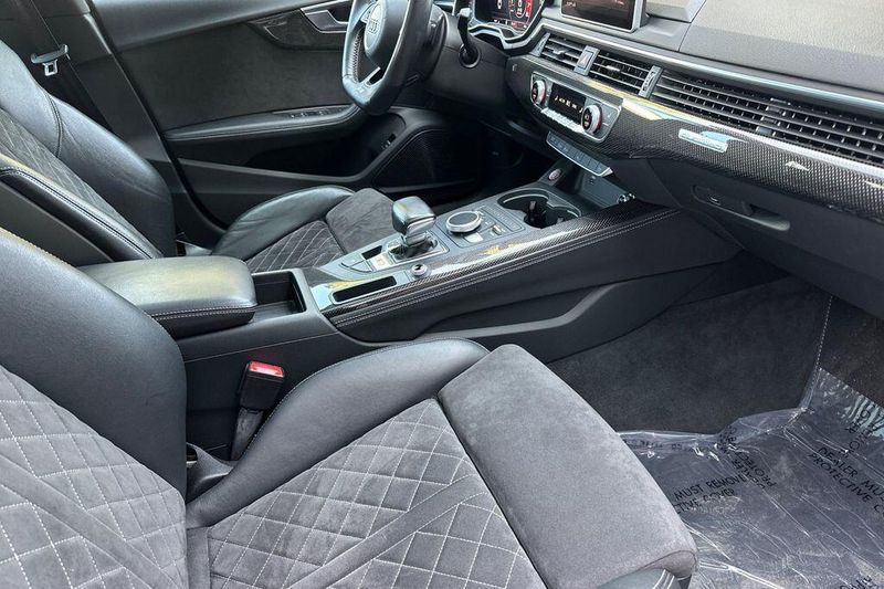 10 Speakers, 4-Wheel Disc Brakes, ABS brakes, Air Conditioning, Alloy wheels, AM/FM radio, Audi smartphone interface (Apple CarPlay/Android Auto), Auto High-beam Headlights, Auto-dimming Rear-View mirror, Automatic temperature control, Brake assist, Bumpers: body-color, Compass, Delay-off headlights, Driver door bin, Driver vanity mirror, Dual front impact airbags, Dual front side impact airbags, Electronic Stability Control, Emergency communication system: Audi connect CARE, Exterior Parking Camera Rear, Four wheel independent suspension, Front anti-roll bar, Front Bucket Seats, Front Center Armrest, Front dual zone A/C, Front fog lights, Front reading lights, Garage door transmitter: HomeLink, Heated door mirrors, Heated Front S Sport Seats, Heated front seats, Illuminated entry, Knee airbag, Leather Shift Knob, Leather steering wheel, Leather/Alcantara Seating Surfaces, Low tire pressure warning, Occupant sensing airbag, Outside temperature display, Overhead airbag, Overhead console, Panic alarm, Passenger door bin, Passenger vanity mirror, Power door mirrors, Power driver seat, Power Liftgate, Power moonroof, Power passenger seat, Power steering, Power windows, Radio data system, Radio: Audi Sound System, Rain sensing wipers, Rear air conditioning, Rear anti-roll bar, Rear reading lights, Rear seat center armrest, Rear window defroster, Remote keyless entry, Speed control, Speed-sensing steering, Speed-Sensitive Wipers, Split folding rear seat, Spoiler, Sport steering wheel, Steering wheel mounted audio controls, Tachometer, Telescoping steering wheel, Tilt steering wheel, Traction control, Trip computer, Turn signal indicator mirrors, Variably intermittent wipers, Wheels: 18'' x 8.5'' 5-Double-Spoke-Star Design.