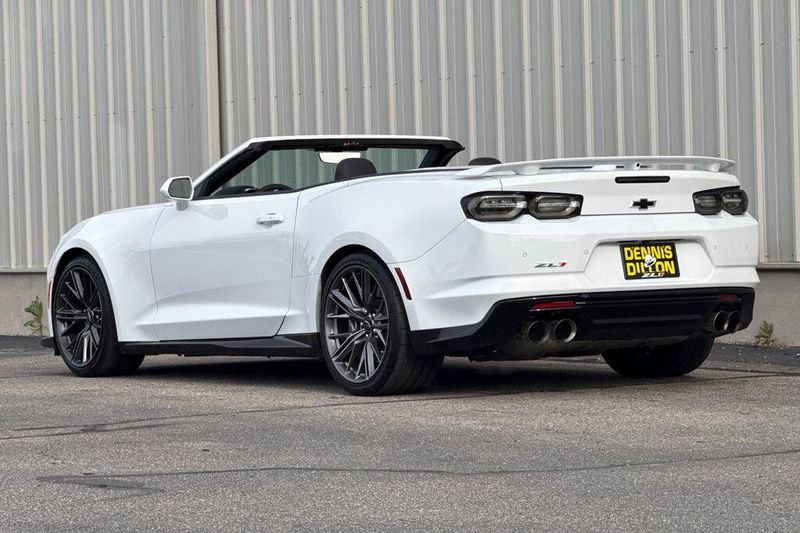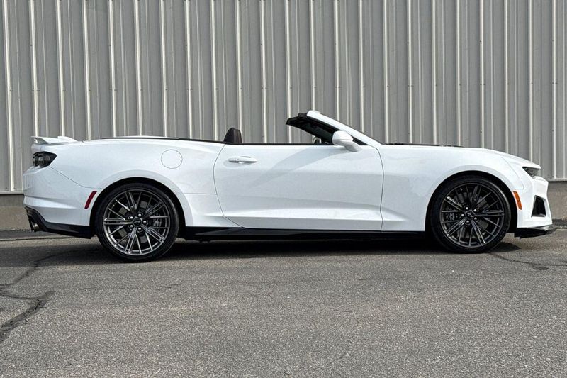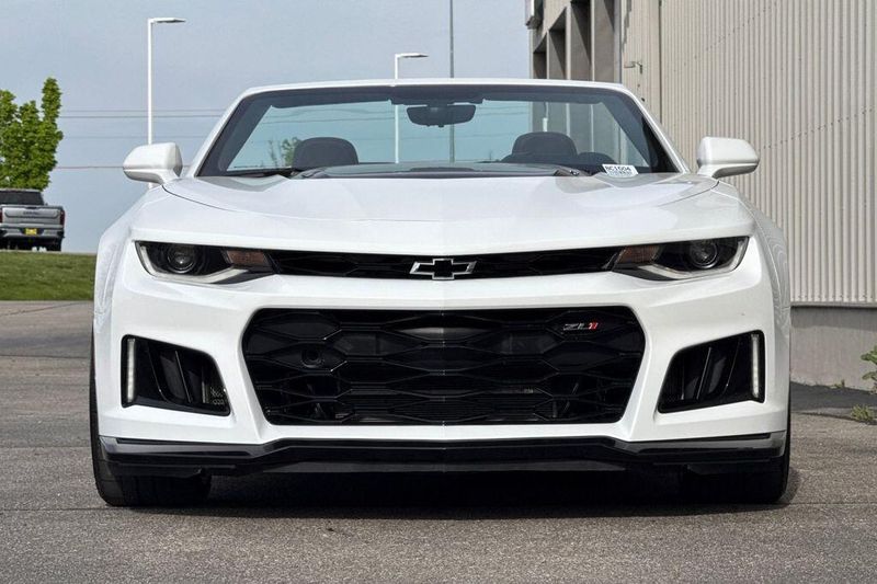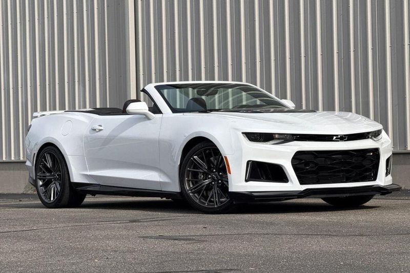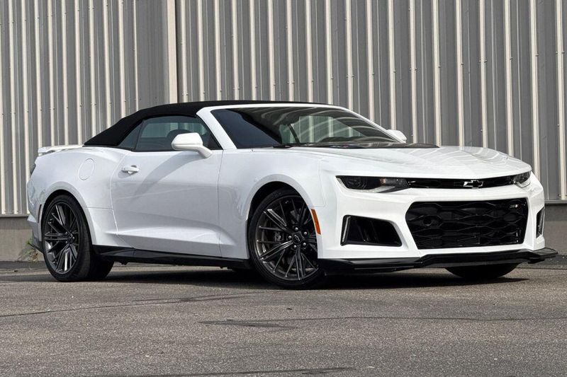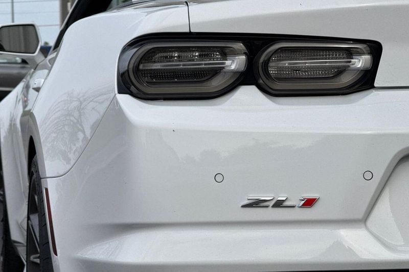 The Camaro ZL1's exterior is a masterpiece of aerodynamic design, with a sleek, aggressive profile and bold, distinctive styling cues that set it apart from the crowd. The striking White paint finish is complemented by a range of premium features, including high-intensity discharge headlights, power-folding mirrors, and a rear spoiler that enhances both the vehicle's visual appeal and its performance capabilities.
