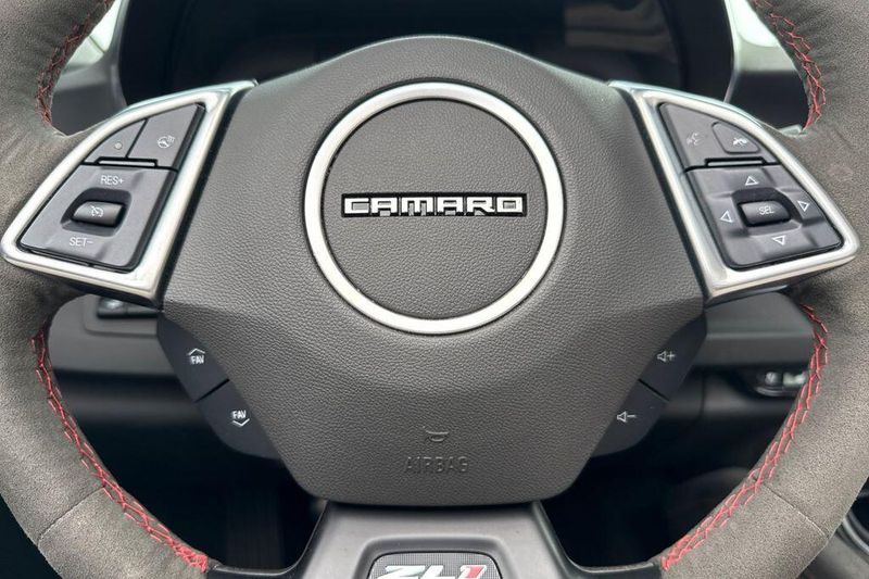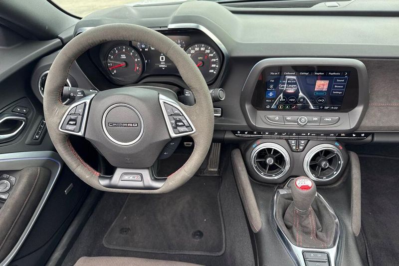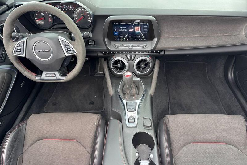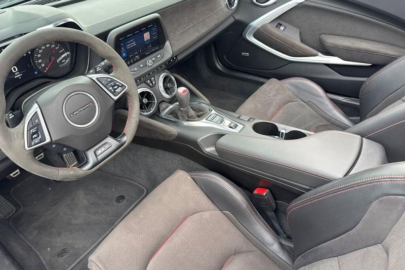 Step inside the Camaro ZL1, and you'll be greeted by a premium, driver-focused cabin that's been meticulously crafted to provide an unparalleled driving experience. The leather-trimmed seats with sueded inserts offer exceptional support and comfort, while the Heads-Up Display and Bose premium audio system ensure you stay connected and entertained on every journey.