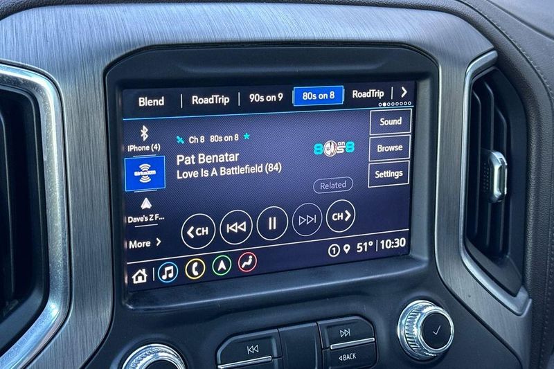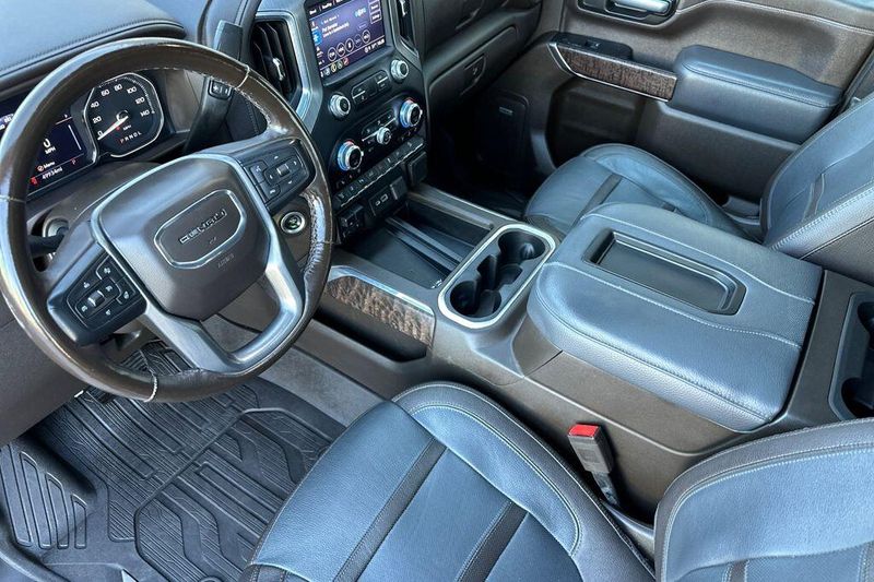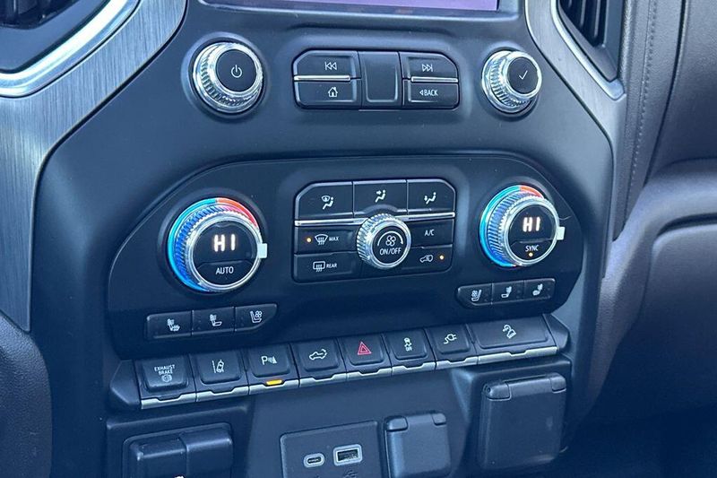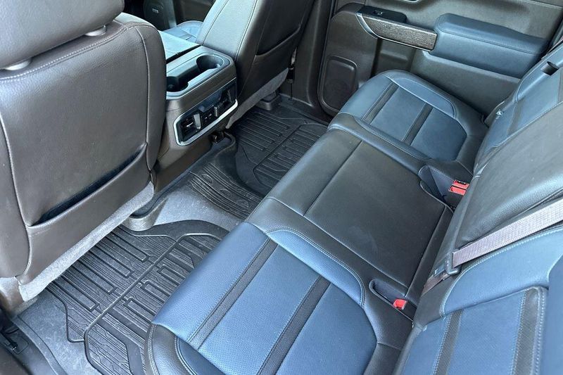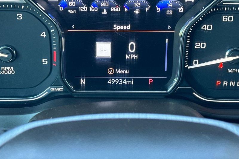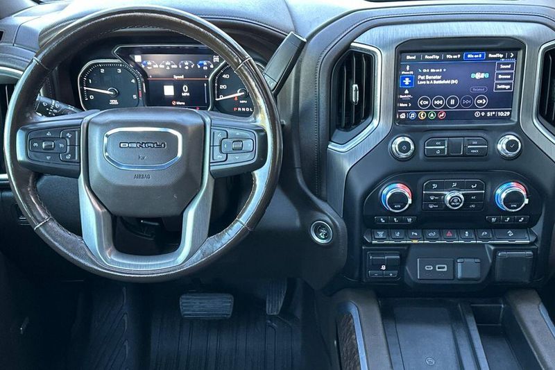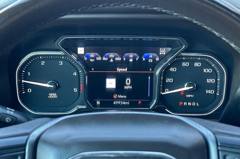 The Denali Ultimate package takes this Sierra to the next level, offering a wealth of premium features and technology. Enjoy the convenience of the MultiPro tailgate, the enhanced visibility of the HD Surround Vision camera system, and the comfort of heated and ventilated front seats. The Denali's signature styling, including the chrome accents and high-gloss black aluminum wheels, give this truck a commanding presence on the road.
