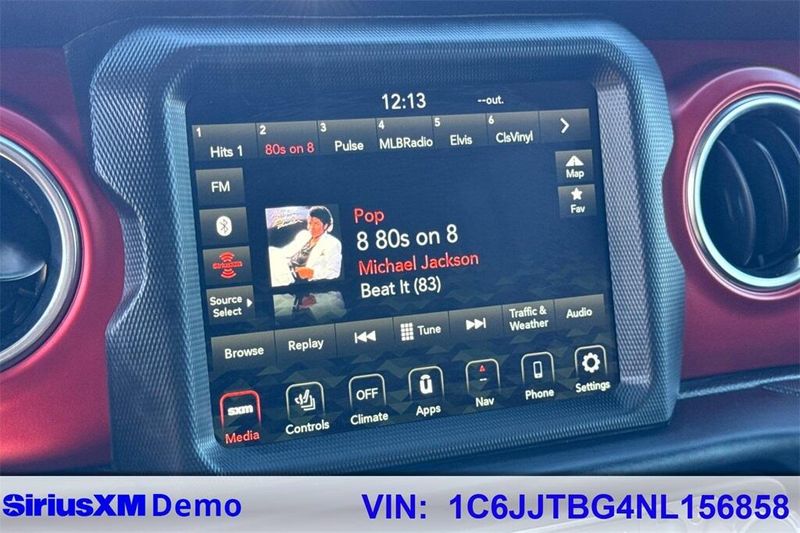 240 Amp Alternator, 4-Wheel Disc Brakes, 4.10 Rear Axle Ratio, 9 Speakers, 97 MPH Vehicle Max Speed Calibration, ABS brakes, Air Conditioning, Alloy wheels, AM/FM radio: SiriusXM, Apple CarPlay/Android Auto, Auto-dimming Rear-View mirror, Automatic temperature control, Black 3-Piece Hard Top, Brake assist, Class IV Receiver Hitch, Cold Weather Group, Compass, Corning Gorilla Glass, Daytime Running Lamps LED Accents, Delay-off headlights, Driver door bin, Driver vanity mirror, Dual front impact airbags, Dual front side impact airbags, Electronic Stability Control, Emergency communication system: SiriusXM Guardian, Freedom Panel Storage Bag, Front anti-roll bar, Front Bucket Seats, Front Center Armrest w/Storage, Front dual zone A/C, Front fog lights, Front LED Fog Lamps, Front License Plate Bracket, Front reading lights, Fully automatic headlights, Garage door transmitter, Heated door mirrors, Heated Front Seats, Heated Steering Wheel, Heavy-Duty Engine Cooling, Illuminated entry, Integrated roll-over protection, Leather steering wheel, LED Lighting Group, LED Park Turn Lamps, LED Premium Reflector Headlamps, LED Taillamps, Low tire pressure warning, MOPAR All-Weather Slush Mats, MOPAR Hardtop Headliner, Navigation System, Occupant sensing airbag, Outside temperature display, Panic alarm, ParkView Rear Back-Up Camera, Passenger door bin, Passenger vanity mirror, Performance Suspension, Power door mirrors, Power steering, Power windows, Premium Cloth Low-Back Bucket Seats, Quick Order Package 24R, Radio data system, Radio: Uconnect 4C Nav w/8.4'' Display, Rear anti-roll bar, Rear reading lights, Rear Sliding Window, Rear Window Defroster, Remote keyless entry, Remote Start System, Security system, Speed control, Split folding rear seat, Steering wheel mounted audio controls, Tachometer, Telescoping steering wheel, Tilt steering wheel, Traction control, Trailer Hitch Zoom, Trailer Tow Package, Trip computer, Variably intermittent wipers, Voltmeter, Wheels: 17'' x 7.5'' Granite Crystal Aluminum, Wheels: 17'' x 7.5'' Polished Black Aluminum.