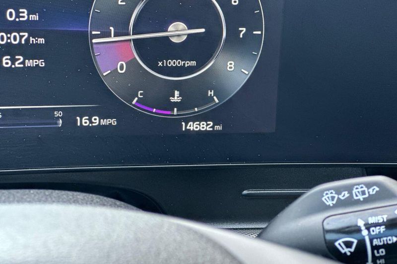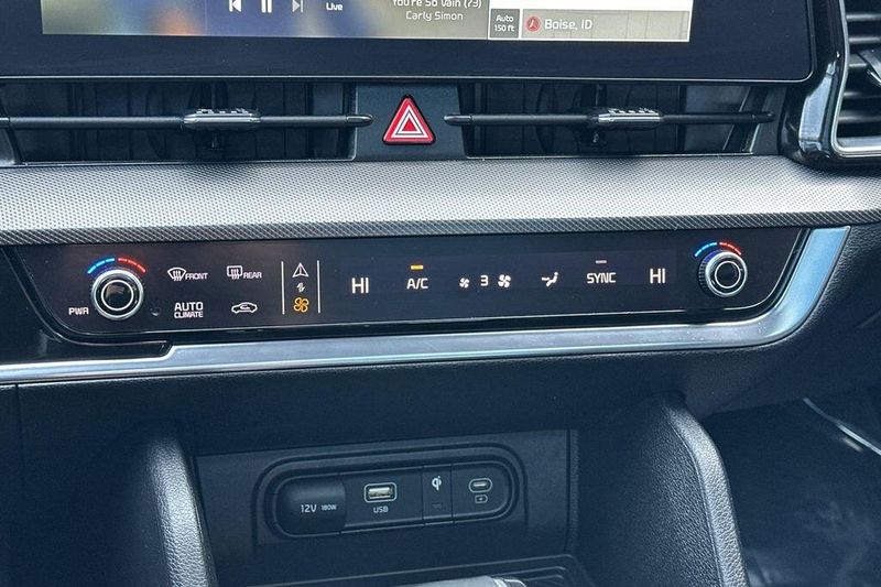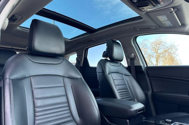 Comfort and convenience are paramount in this Sportage, with amenities like dual-zone automatic climate control, a heated steering wheel, and power-adjustable, heated and ventilated front seats. The panoramic sunroof and power liftgate add an extra touch of luxury and convenience to your daily drives.