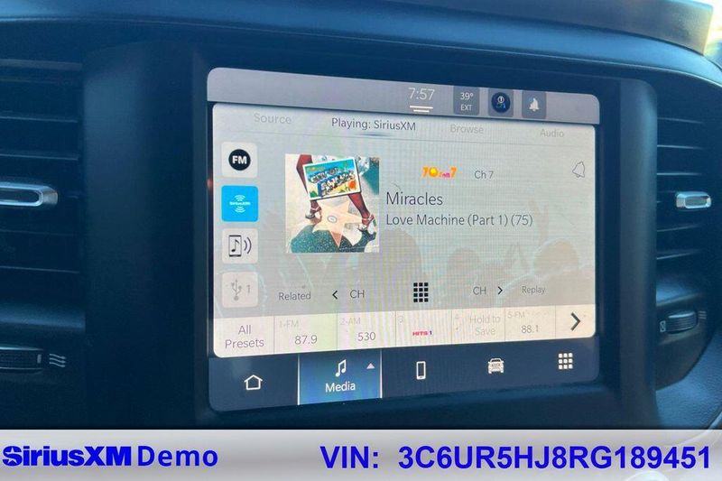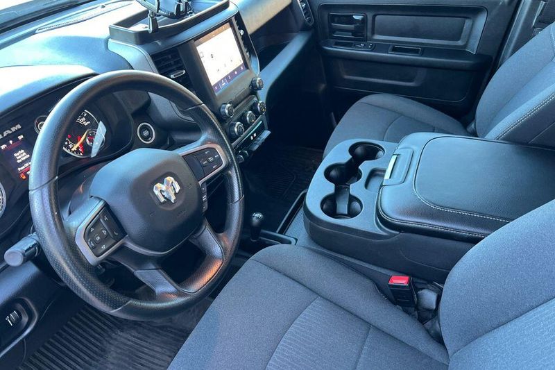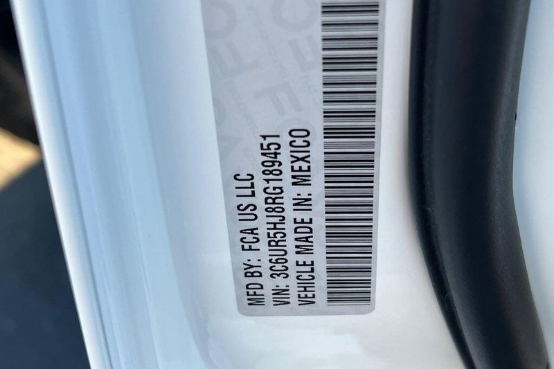 17'' x 7.5'' Steel Styled Wheels, 2 Way Rear Headrest Seat, 220 Amp Alternator, 3.73 Axle Ratio, 4 Way Front Headrests, 4-Wheel Disc Brakes, 40/20/40 Split Bench Seat, 4G LTE Wi-Fi Hot Spot, 50 Gallon Fuel Tank, 6 Speakers, 8.4'' Touchscreen Display, ABS brakes, Active Noise Control System, Air Conditioning, All R1 Low Radios, All Radio Equipped Vehicles, AM/FM radio, Anti-Spin Differential Rear Axle, Apple CarPlay, Auto Power-Folding Mirrors, Black Exterior Mirrors, Blind Spot & Cross Path Detection, Bluetooth Handsfree Phone & Audio, Brake assist, Bright Front Bumper, Bright Rear Bumper, Carpet Floor Covering, Center Hub, Chrome Appearance Group, Chrome Grille Surround, Chrome Headlamp Bezels, Cloth 40/20/40 Bench Seat, Compass, Connectivity - US/Canada, Delay-off headlights, Driver door bin, Dual Alternators Rated At 380 Amps, Dual front impact airbags, Dual front side impact airbags, Electronic Stability Control, Electronically Controlled Throttle, Emergency communication system: SiriusXM Guardian, Exterior Mirrors Courtesy Lamps, Exterior Mirrors w/Heating Element, Exterior Mirrors w/Supplemental Signals, For Details, Visit DriveUconnect.com, For More Info, Call 800-643-2112, Forward & Reverse Utility Lights, Front & Rear Floor Mats, Front anti-roll bar, Front Armrest w/Cupholders, Front Center Armrest w/Storage, Front License Plate Bracket, Front reading lights, Fully automatic headlights, Global Telematics Box Module (TBM), Google Android Auto, GPS Antenna Input, Heavy Duty Vinyl 40/20/40 Split Bench Seat, Illuminated entry, Integrated Center Stack Radio, Integrated Voice Command w/Bluetooth, LED Tail Lamps, Low tire pressure warning, Manual Adjust 4-Way Driver Seat, Manual Adjust 4-Way Front Passenger Seat, Manual Folding Exterior Mirrors, Manual Telescoping Mirrors, Manufacturer's Statement of Origin, Matte Black Mesh Grille w/Chrome, Mirror Running Lights, MOPAR Front & Rear Rubber Floor Mats, MOPAR Spray In Bedliner, Occupant sensing airbag, Outside temperature display, Overhead airbag, Overhead console, ParkView Rear Back-Up Camera, Passenger door bin, Passenger vanity mirror, Power Adjust Mirrors, Power Adjustable Convex Aux Mirrors, Power Heated Fold Telescope Mirrors, Power Heated Folding Telescope Mirrors, Power steering, Power Telescoping Mirrors, Power windows, Quick Order Package 2GA Tradesman, Radio data system, Radio: Uconnect 3 w/5'' Display, Radio: Uconnect 5 W w/8.4'' Display, Rear anti-roll bar, Rear Folding Seat, Rear Power Sliding Window, Rear step bumper, Rear Wheelhouse Liners, Rear Window Defroster, Remote USB Port - Charge Only, Selectable Tire Fill Alert, SiriusXM Radio Service, SiriusXM Satellite Radio, Speed control, Storage Tray, Tachometer, Tilt steering wheel, Tip Start, Traction control, Tradesman Level 2 Equipment Group, Trailer Brake Control, Trailer Light Check, Variably intermittent wipers, Voltmeter, Wheels: 18'' x 8.0'' Steel Chrome Clad.