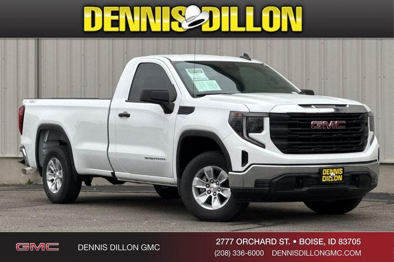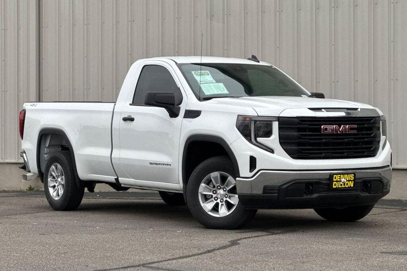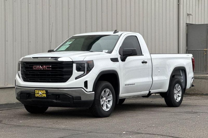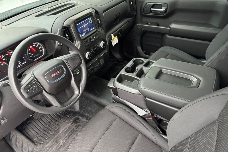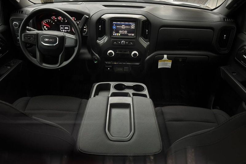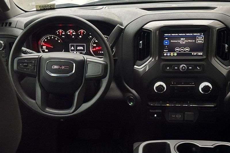 10-Speed Automatic, 4WD, Black Cloth, 170 Amp Alternator, 2 Charge/Data USB Ports, 2 Speakers, 2-Speaker Audio System Feature, 220 Amp Alternator, 4-Way Manual Driver Seat Adjuster, 4-Way Manual Passenger Seat Adjuster, 4-Wheel Disc Brakes, ABS brakes, Air Conditioning, AM/FM radio, Apple CarPlay/Android Auto, Auto High-beam Headlights, Auto-Locking Rear Differential, Automatic Emergency Braking, Auxiliary External Transmission Oil Cooler, Brake assist, Buckle to Drive, Bumpers: chrome, Chrome Header w/Flat Black Grille Insert Bars, Compass, Convenience Package, Deep-Tinted Glass, Delay-off headlights, Driver door bin, Dual front impact airbags, Dual front side impact airbags, Electric Rear-Window Defogger, Electronic Stability Control, Emergency communication system: OnStar, External Engine Oil Cooling, EZ Lift Power Lock & Release Tailgate, Following Distance Indicator, Forward Collision Alert, Front 40/20/40 Split-Bench Seat, Front anti-roll bar, Front Center Armrest w/Storage, Front Frame-Mounted Black Recovery Hooks, Front License Plate Kit, Front Pedestrian Braking, Front reading lights, Front wheel independent suspension, Fully automatic headlights, HD Rear Vision Camera, Heated door mirrors, Hitch Guidance, Illuminated entry, Integrated Trailer Brake Controller, IntelliBeam Automatic High Beam On/Off, Lane Keep Assist w/Lane Departure Warning, LED Cargo Area Lighting, Low tire pressure warning, Occupant sensing airbag, OnStar Services Capable, Outside temperature display, Overhead airbag, Overhead console, Panic alarm, Passenger door bin, Passenger vanity mirror, Power Door Locks, Power door mirrors, Power Front Windows w/Driver Express Up/Down, Power Front Windows w/Passenger Express Down, Power steering, Power windows, Preferred Equipment Group 1SA, Pro Value Package, Push Button Start, Radio data system, Radio: GMC Infotainment Audio System, Rear reading lights, Rear step bumper, Remote Keyless Entry, Remote keyless entry, Solar Absorbing Tinted Glass, Speed control, Speed-sensing steering, Spray-On Pickup Bedliner, Standard Suspension Package, Tachometer, Tilt steering wheel, Traction control, Trailering Package, Trip computer, Variably intermittent wipers, Vinyl Seat Trim, Voltmeter, Wheels: 17'' x 8'' Bright Silver Painted Aluminum, Wheels: 17'' x 8'' Silver Painted Steel, Wi-Fi Hotspot Capable, Wireless Apple CarPlay/Wireless Android Auto, 10-Speed Automatic, 4WD, Black Cloth.